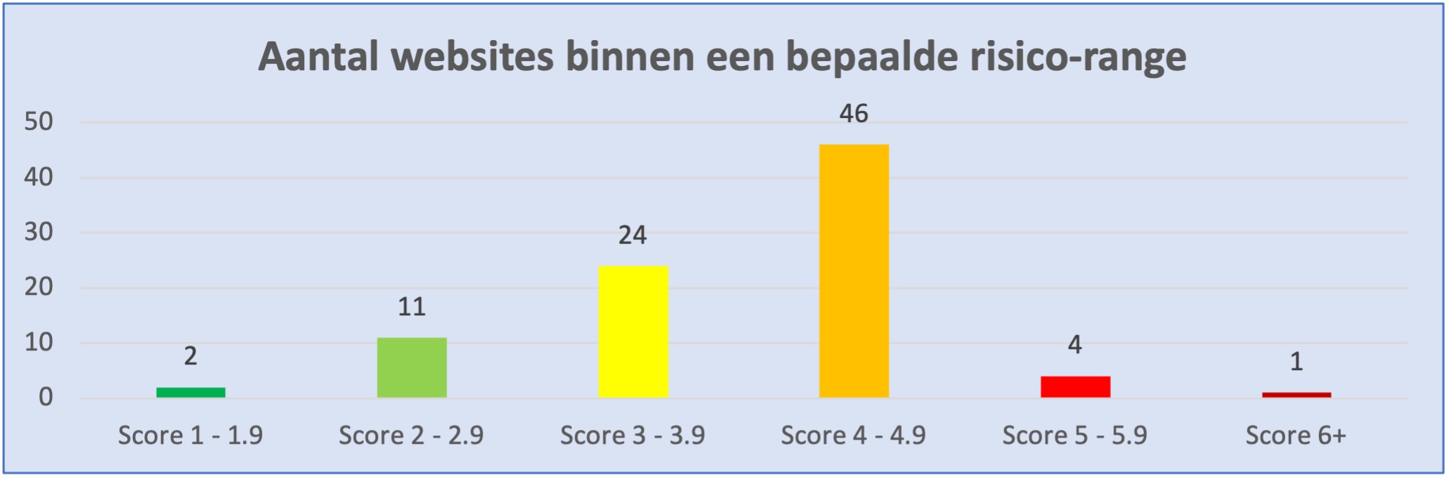 Het gemiddelde van alle onderzochte websites scoort weliswaar lager dan de eerder aangegeven grens van 4, het merendeel van alle gescande websites (58%) behoort wel degelijk tot de categorie met een score van 4 of hoger, dus kwetsbaar voor cyberaanvallen. Met name deze websites, en mogelijk de gehele IT-omgevingen rond deze websites, vragen om aandacht.